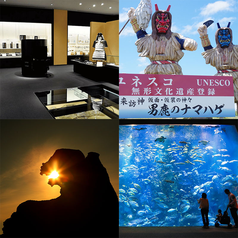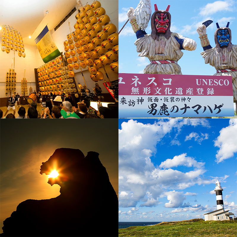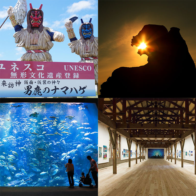 เป็นหลักสูตรราคาสุดคุ้มที่อัดแน่นไปด้วยกิจกรรมท่องเที่ยวที่เป็นเอกลักษณ์ของทั้งสามเมือง อาคิตะ โอกะ และลากูน รวมถึงพิพิธภัณฑ์ศิลปะพื้นบ้านที่คุณสามารถสัมผัสประสบการณ์เทศกาลฤดูร้อนตัวแทนของเมืองอาคิตะ "" เทศกาลคันโตอาคิตะ "" พิพิธภัณฑ์นามาฮาเกะ และชินซัง Denshoukan ที่คุณจะได้สัมผัส "นามาฮาเกะแห่งโอกะ" มรดกทางวัฒนธรรมที่จับต้องไม่ได้ของยูเนสโก และโชวะสถานีริมทาง ""บลู เมสเซ่ อาคิตะ" ที่คุณจะได้เพลิดเพลินกับการซื้อผักที่ปลูกโดยตรงและผลิตภัณฑ์พิเศษ